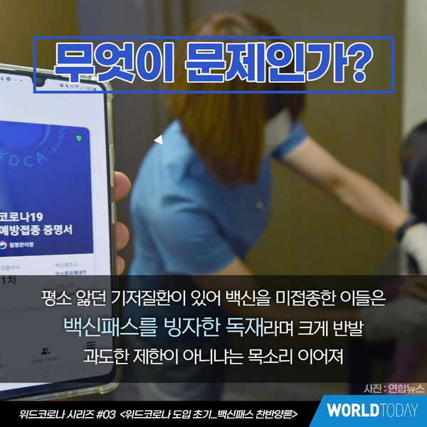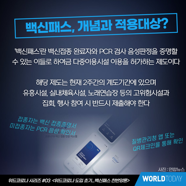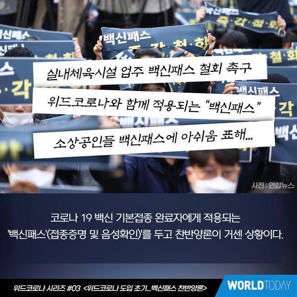 [월드투데이 신서연 기자] 백신패스를 두고 찬반양론이 심화되고 있다. 위드코로나와 함께 시행되는 백신패스의 개념과 이를 둘러싼 논란들을 살펴본다.