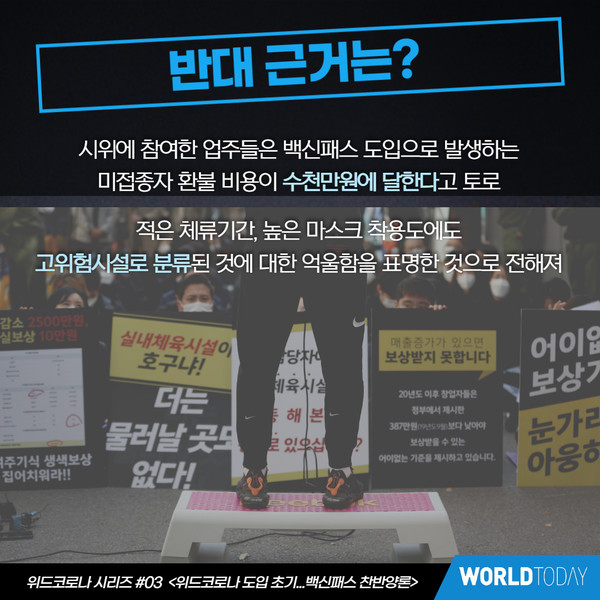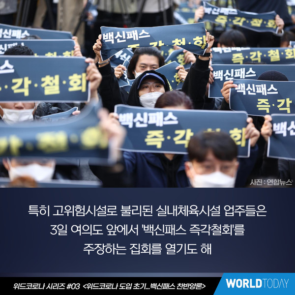 철회 시위가 열리는 등 백신패스를 두고 논란이 거세다
