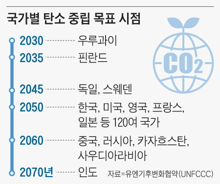 2010년 칸쿤 합의에서 지구 평균기온 2도 억제 목표를 공식적으로 채택하였으며 이어 2016년 발효된 파리협정 이후 121개 국가가 '2050 탄소중립 목표 기후동맹'에 가입하면서 전 세계의 이슈로 떠올랐다.