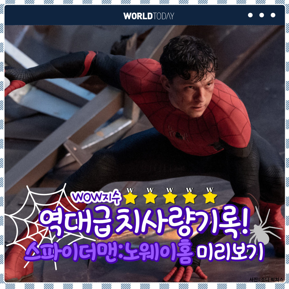 관련기사 [WOW지수로 보는 리뷰] 편협한 선악의 잣대가 만들어낸 디스토피아, 넷플릭스 오리지널 '지옥' [WOW지수로 보는 리뷰] 디즈니, 사랑스러움이 이내 폭발하다!...영화 '엔칸토:마법의 세계' [종합] '스파이더맨: 노 웨이 홈' 톰 홀랜드-손흥민, 젠데이아-정호연 조합 다시 주목?