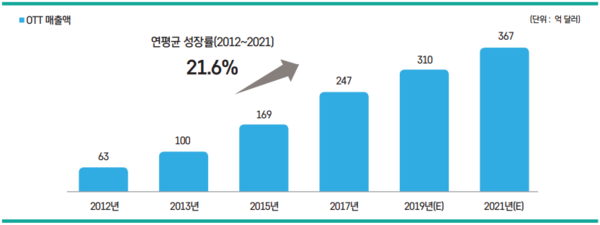 국내 OTT 시장의 규모는 2014년 1천926억원 수준에서 2020년 7천801억 규모로 7년새 4배 가까이 성장했다. 이는 연평균 26.3% 성장률이며 2019년 기준 이용자 수 통계에 따르면 우리나라 국민 2명 중 1명꼴로 OTT 서비스를 사용하고 있다. 2021년 통계에 따르면 유료 OTT 이용률만 50%에 근접해, 실질적으로는 대다수 국민이 OTT를 사용하고 있는 셈이다.