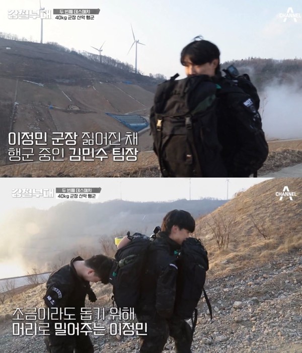 그러나 이정민의 고통이 극심해지며 완주 여부가 불투명해지던 순간, 김민수는 그의 군장을 대신 메고 입으로 물고 가는 전우애를 보여 모두를 놀라게 했다. 이정민 또한 군장을 머리로 밀며 힘을 보태는 처절한 투지를 보여 김성주를 비롯한 패널과 시청자들을 눈물 쏟게 만들었다.