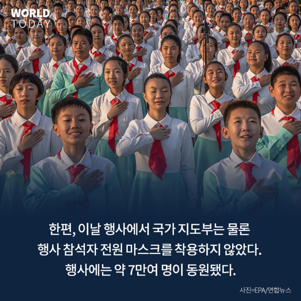 한편, 이날 행사에서 국가 지도부는 물론 행사 참석자 전원 마스크를 착용하지 않았다. 행사에는 약 7만여 명이 동원됐다.