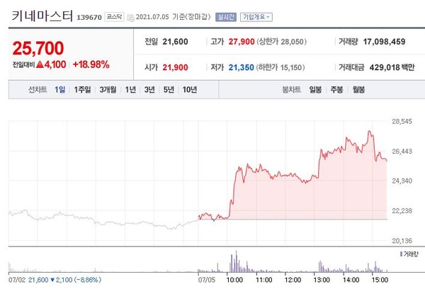 앞서 1일 키네마스터는 이사회를 통해 투자 재원 확보를 위한 자사주 매각을 단행했다. 매각된 자사주는 487,515주로, 거래대금은 약 110억으로 주당 매각 단가는 22,515원이다.