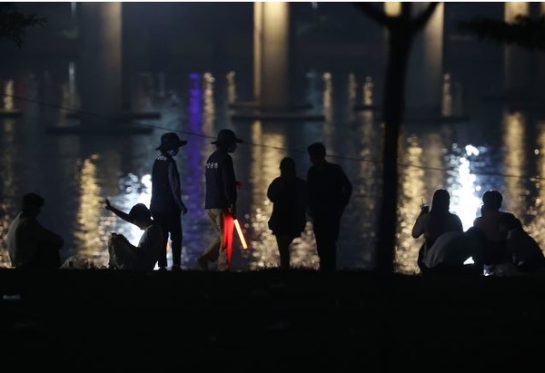 주요 공원에서 야외 음주를 금지하기로 한 6일 오후 10시가 조금 넘은 시각, 종로구 낙산공원에는 친구들과 술을 마시고, 광진구 뚝섬한강공원은 강변에 설치된 테이블이나 의자에 앉아 술을 마시는 사람들로 북적였다.
