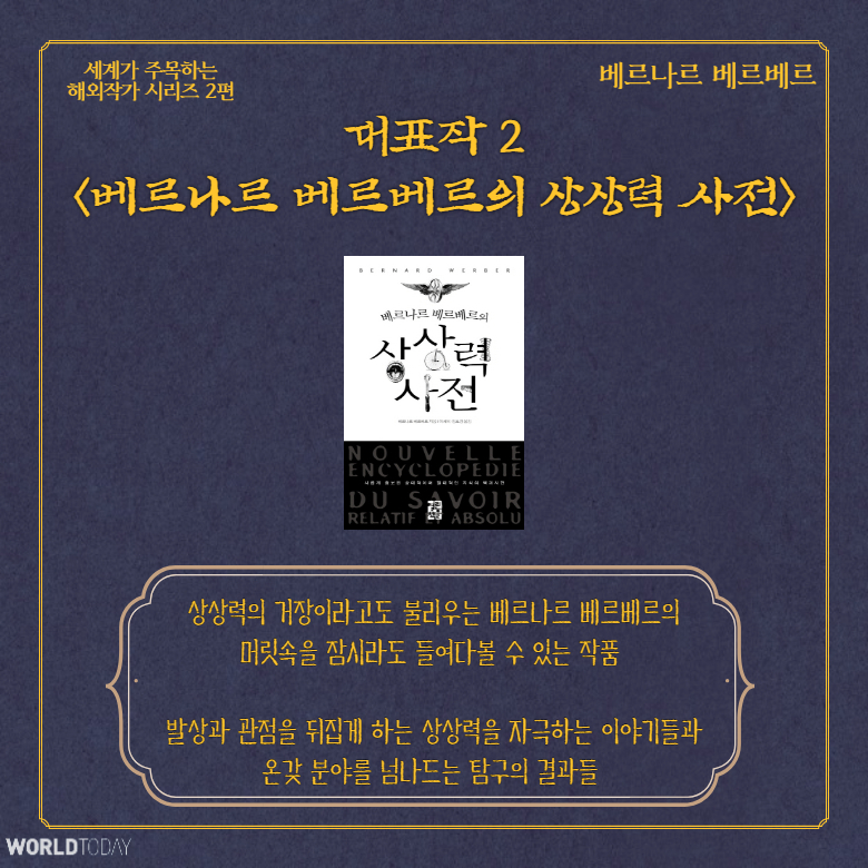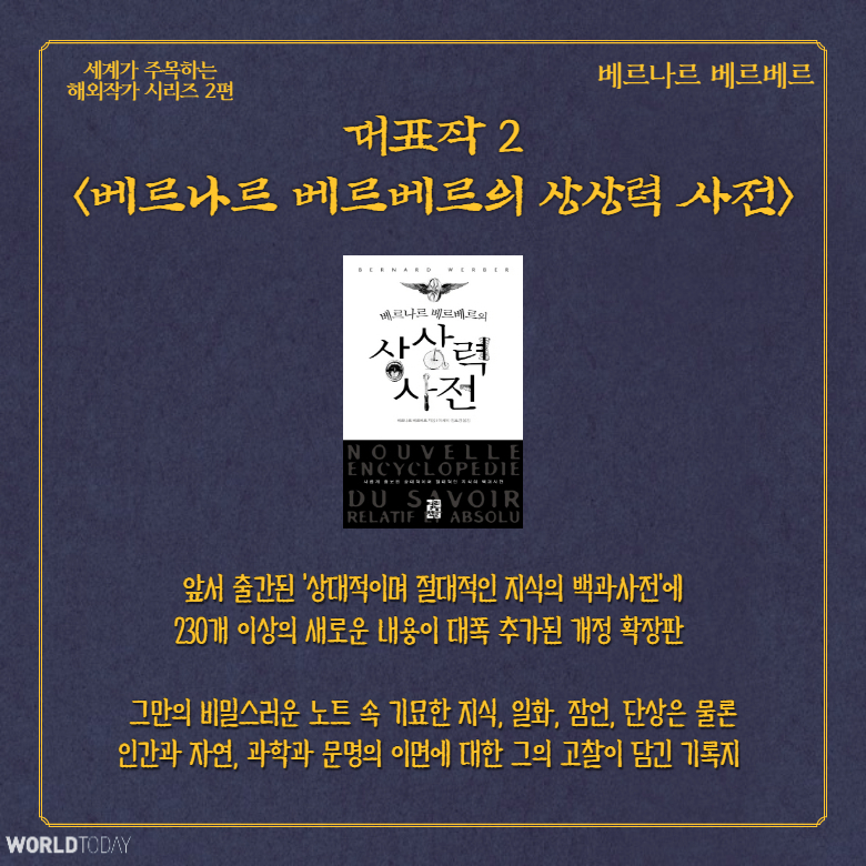 [월드투데이 신서연 기자] 세계가 주목하는 해외작가 시리즈 두 번째 이야기. 영혼의 진화를 말하는 소설가 '베르나르 베르베르'를 소개한다.