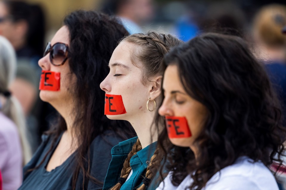 낙태 결정권을 요구하는 지지자 사이로 등장한 한 남성은 'OVERTRRN ROE'라는 글씨가 적힌 피켓을 들고 등장했는데, 이는 낙태 합헌 결정을 내렸던 로 대 웨이드 판결을 뒤집자는 뜻을 담고 있다.