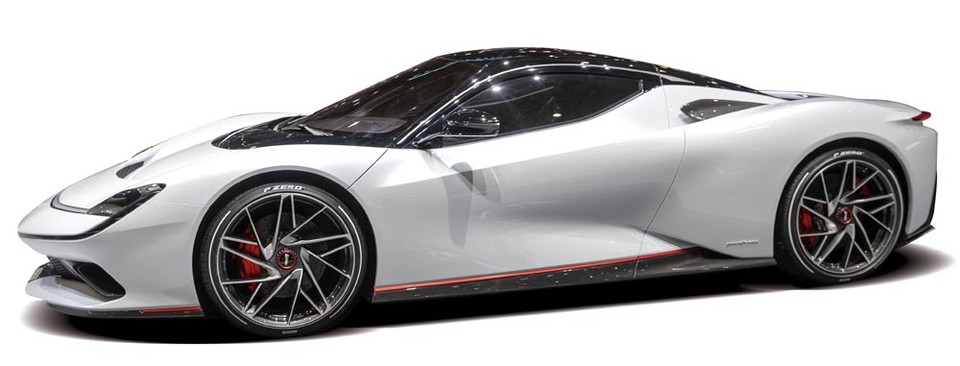 전기차임에도 이탈리안 스포츠카의 감성을 살린 디자인으로 클래식한 매력을 뽐낸다. 최고출력 1,397kW, 최대토크 234.0kg.m, 시속 100km까지 2초 이내, 300km까지 12초 도달. 최고속도 450km/h. 항속거리 483km.
